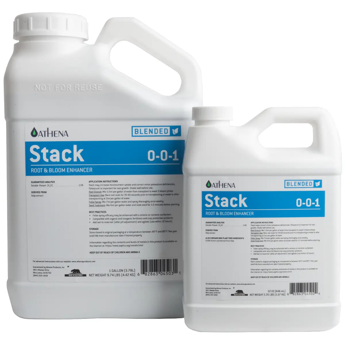Stack is a natural plant nutrient made from kelp extract. The nutrients in Stack encourage healthy growth and flowering. Stack gives the plant tools to reach its full genetic potential. When used as a foliar or root drench, Stack helps correct minor potassium deficiencies.