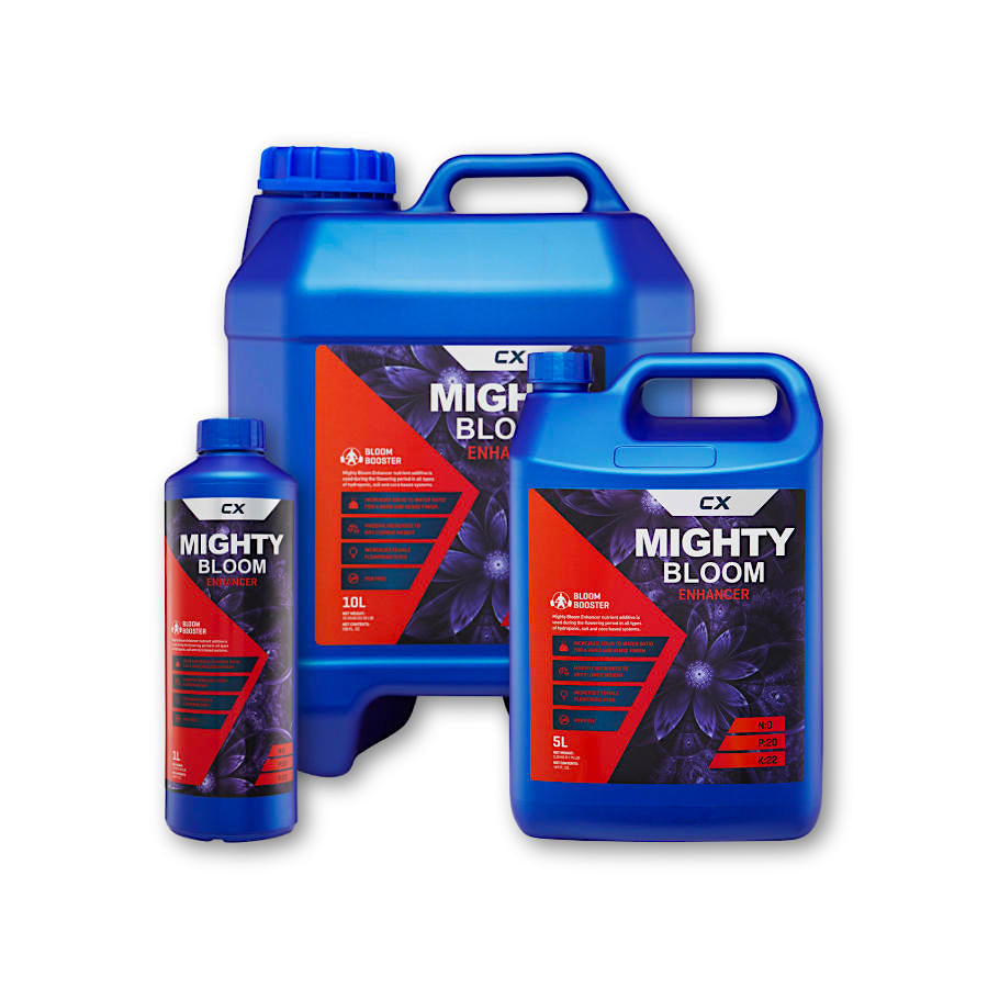 When a plant hits the flowering phase, it's need for potassium increases dramatically. Mighty Bloom Enhancer provides a high quality form of potassium in addition to the amount supplied by the base nutrient. The extra potassium powers the fast rate of flower development and growth ensuring that the plant does not run short of this essential flowering nutrient. Mighty Bloom Enhancer ensures flowering is never compromised by a lack of potassium. As a result, final crop weight is optimised.